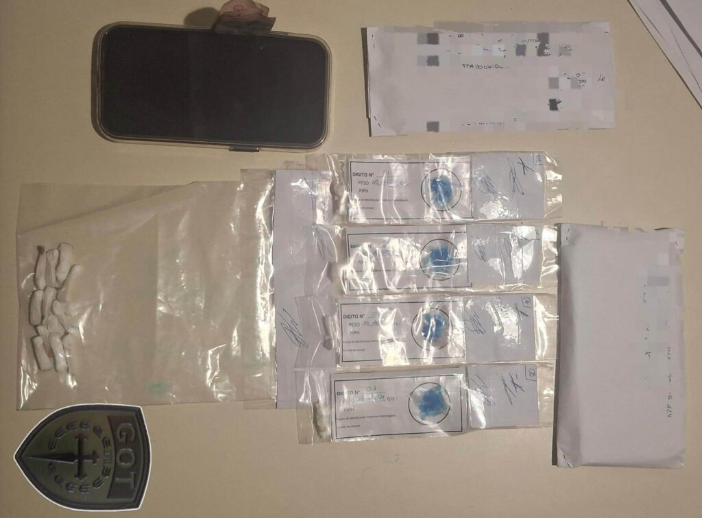 Durante la requisa palparea realizada a uno de los individuos, los uniformados hallaron entre sus prendas un total de 17 envoltorios de nylon que contenían una sustancia polvorienta de color blanquecino, compatible con estupefacientes.