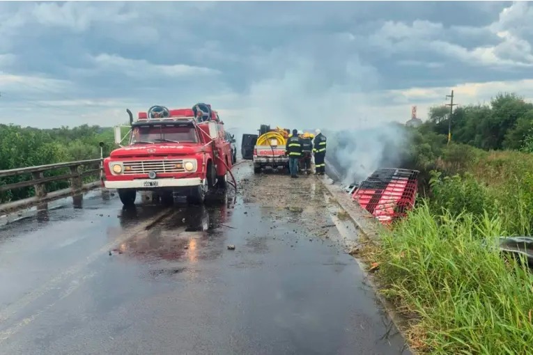 El accidente involucró a un camión de transporte de animales perteneciente a la empresa Tomasello, un importante frigorífico de la región, con sede en la localidad de Ricardone. El vehículo circulaba sin carga, en sentido suroeste–noreste, cuando por causas que aún son materia de investigación se produjo el siniestro que derivó en el fuego generalizado del rodado.