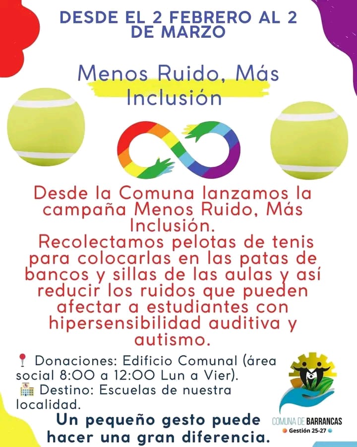 La Comuna de Barrancas lanzó la campaña “Menos Ruido, Más Inclusión”, una iniciativa solidaria que busca reducir los ruidos en las aulas y promover entornos educativos más inclusivos para estudiantes con hipersensibilidad auditiva y trastorno del espectro autista (TEA).