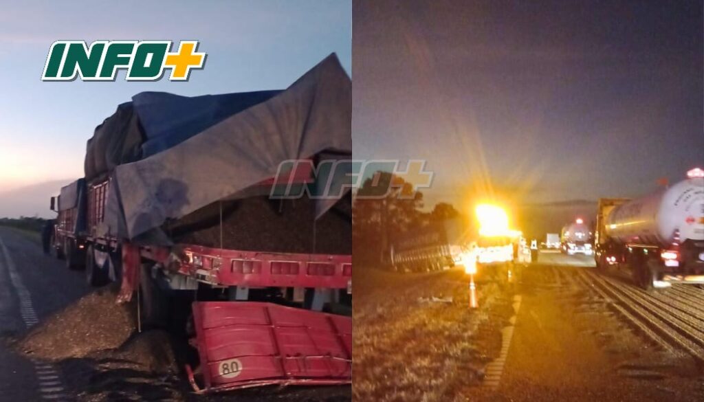 Según pudo saber Info Mas, uno de los camiones impactó desde atrás al otro. Uno de ellos terminó sobre el cantero central, mientras que el restante perdió parte de la carga de cereal que transportaba, la cual quedó esparcida sobre la calzada.