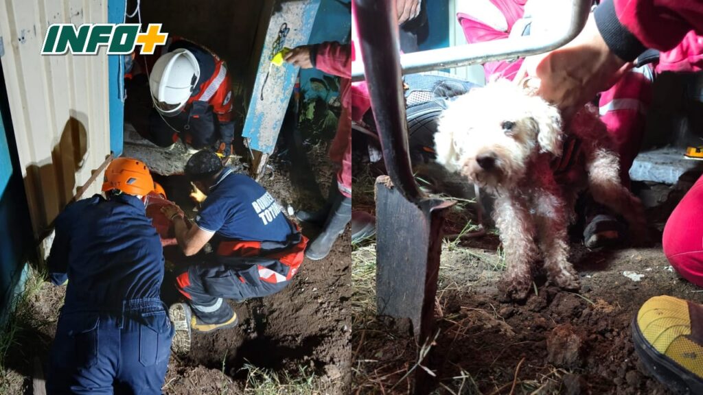 Luego implementaron un lazo con el que consiguieron sacar al perro con una cuerda. El rescate fue exitoso y fue devuelto a sus dueños.