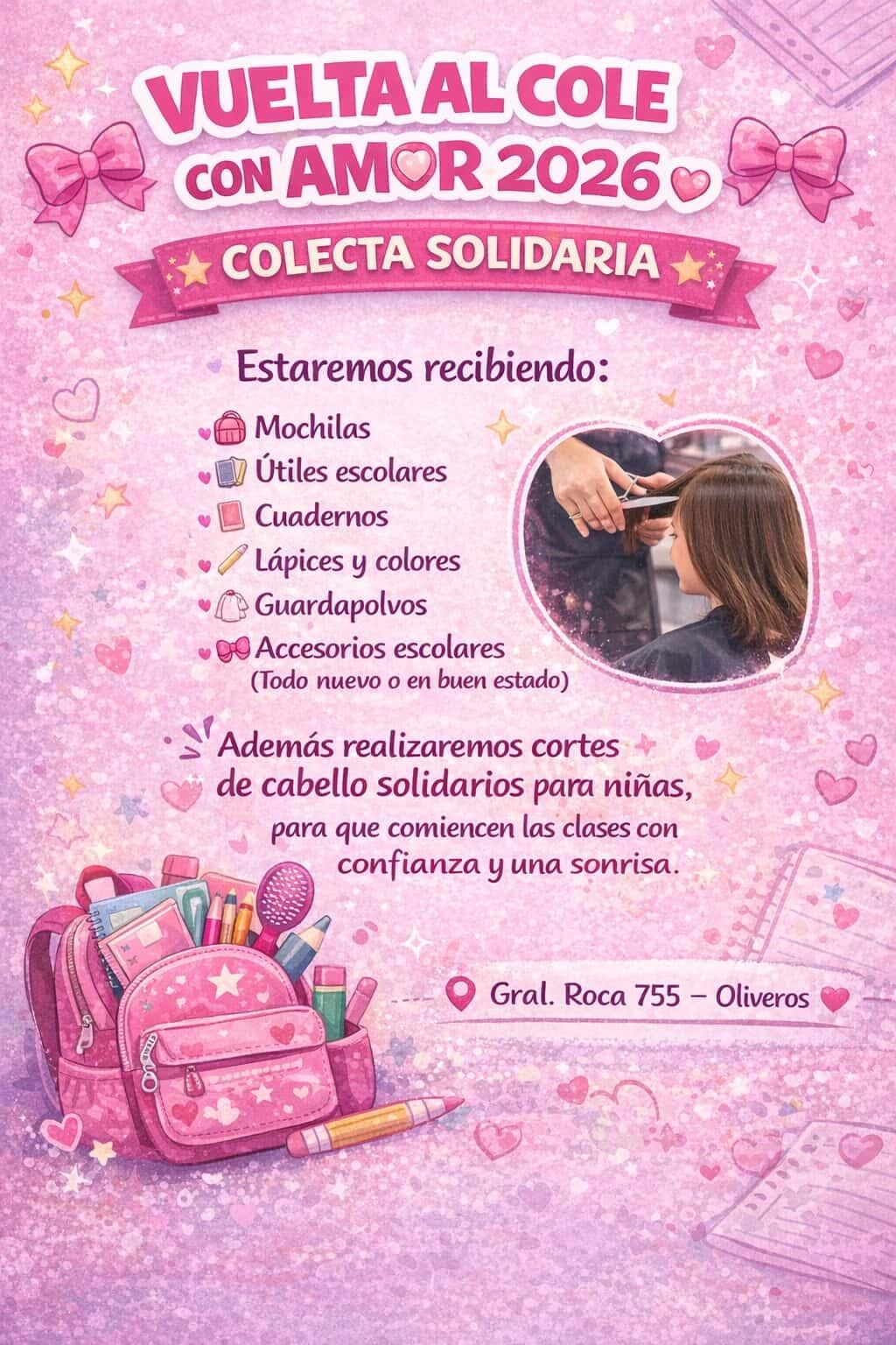 Del 17 al 26 de febrero, Osiel Peluquería & Estética llevará adelante la iniciativa “Vuelta al Cole Solidaria”, una propuesta destinada a acompañar a niñas y adolescentes de Oliveros en el inicio del ciclo lectivo. La actividad se desarrollará en el local ubicado en Gral. Roca 755.