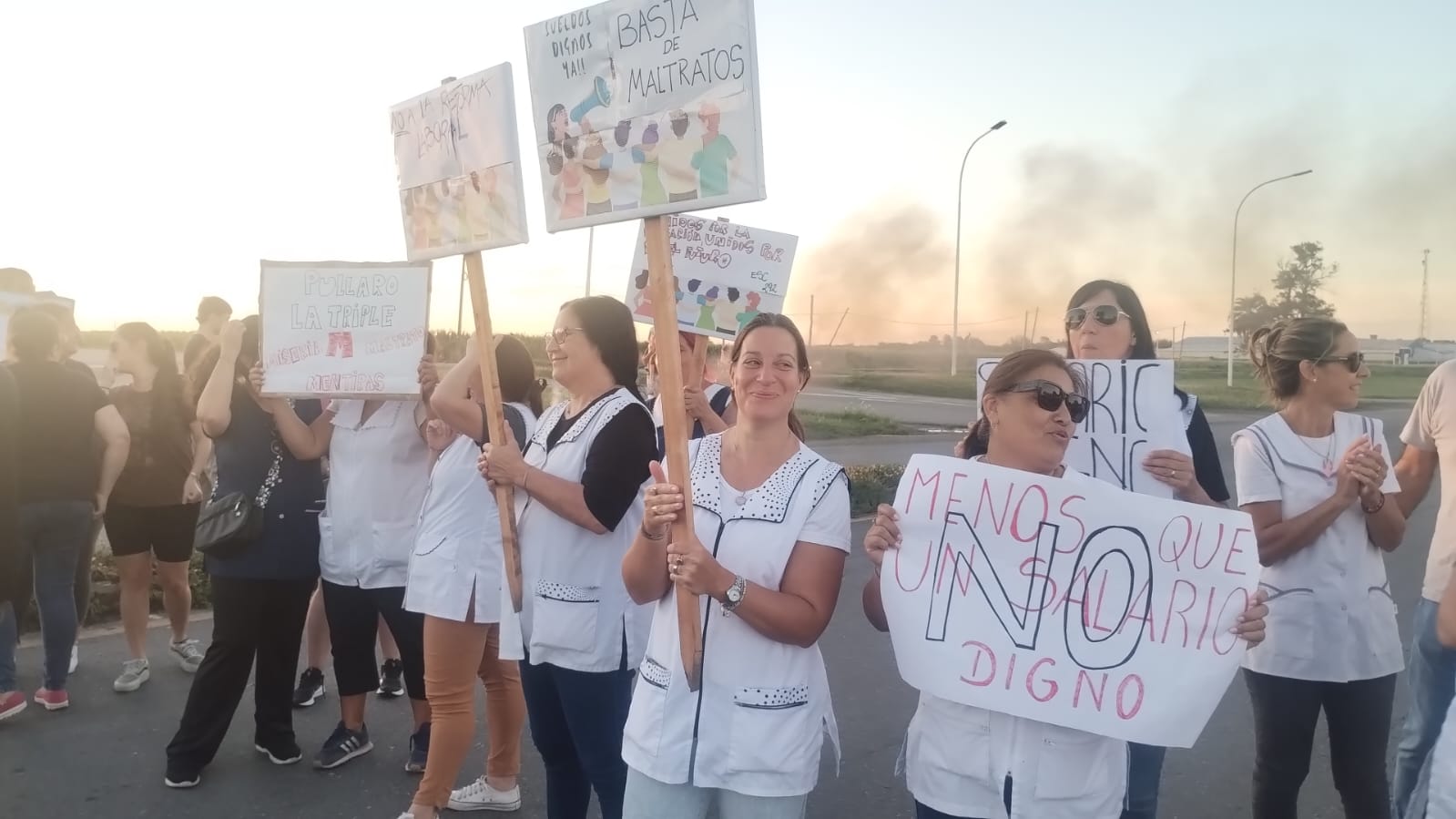 «Este cartel es tan precario como nuestro salario», decía uno de los elocuentes carteles que mostraron mientras cortaban por algunos minutos la Ruta Nacional 11 para visibilizar su reclamo.