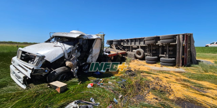 La Ruta Nacional 34 permanecía totalmente cortada luego de un tremendo choque frontal entre dos camiones ocurrido en el kilómetro 114 de la traza a la altura de Pueblo Casas.