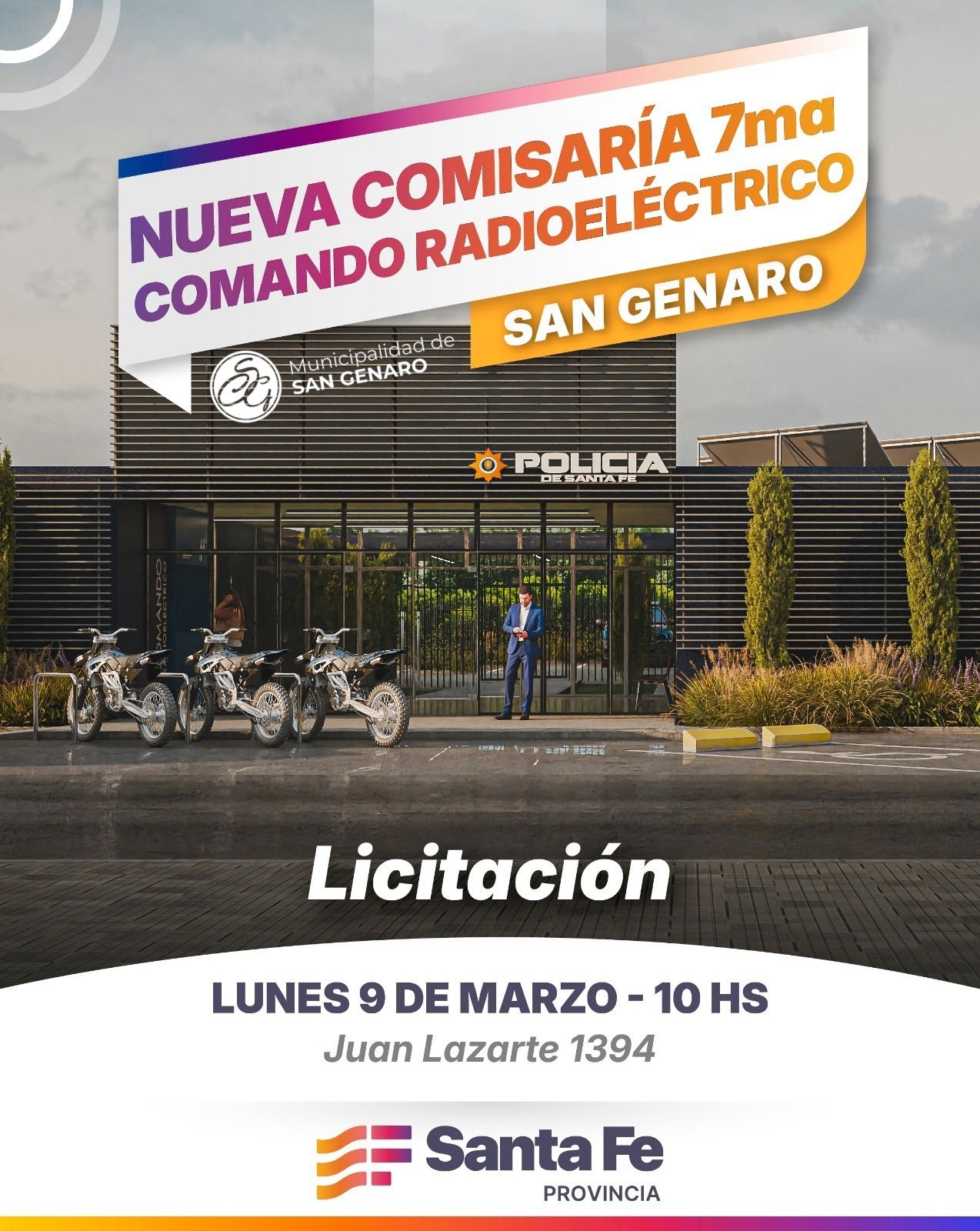 El Ministerio de Justicia y Seguridad de la Provincia de Santa Fe realizará el acto de apertura de sobres para la licitación de la nueva Comisaría 7ma. y el Comando Radioeléctrico en la ciudad de San Genaro.