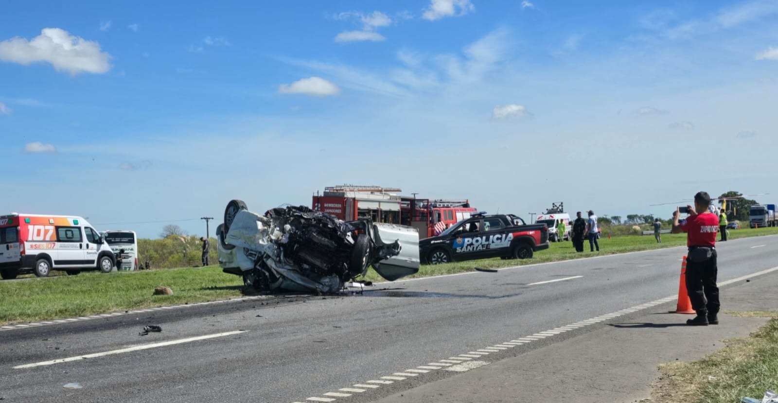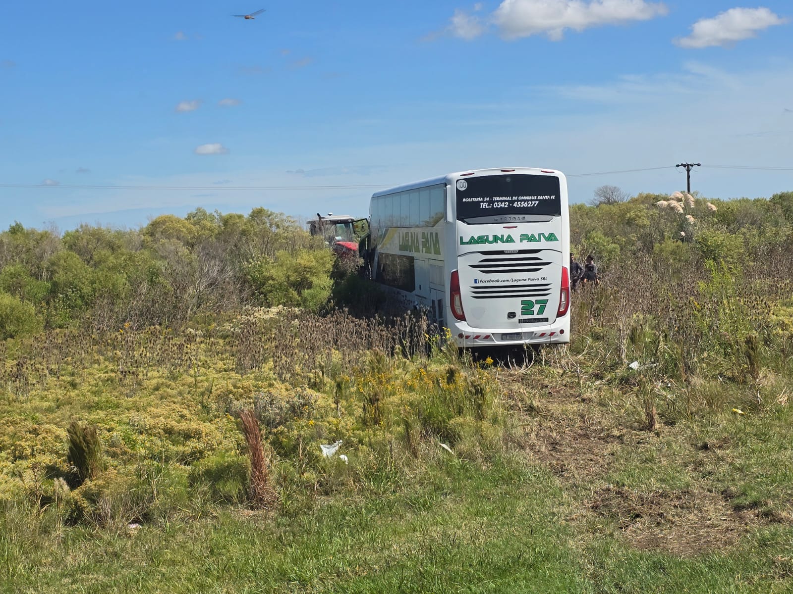 De acuerdo con la información preliminar, una camioneta Fiat Toro blanca se cruzó de carril e impactó de frente contra un colectivo de la empresa Laguna Paiva. Tras el violento choque, la camioneta volcó sobre la calzada mientras que el colectivo terminó su recorrido fuera de la ruta, entre los pastizales.
