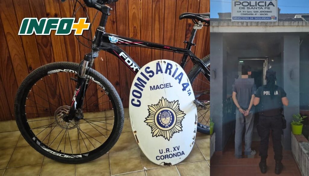 En la tarde de este jueves recuperaron una bicicleta en Maciel que había sido robada el día anterior frente a un comercio del pueblo. Un hombre fue aprehendido al ser descubierto circulando en el birrodado por la localidad.