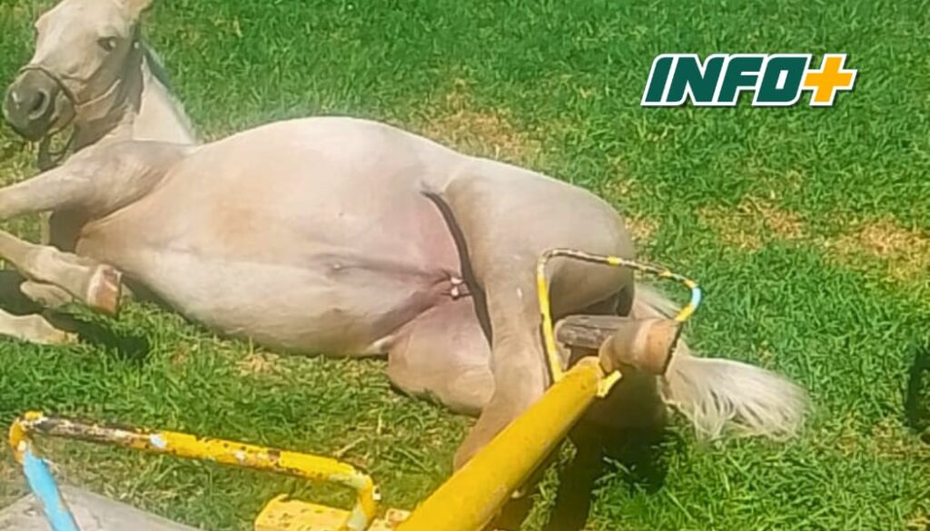 Posteriormente se procedió ayudar al caballo a ponerse en pie descartando que el mismo no tiene otro tipo de lesión.