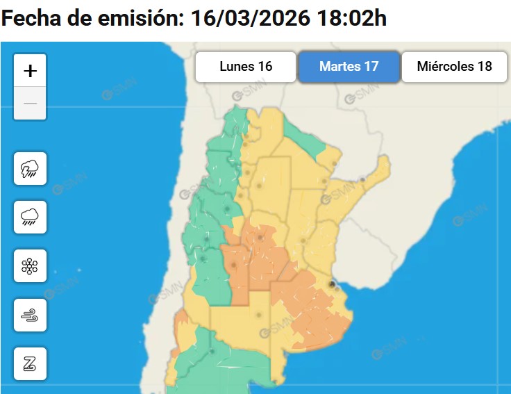 El Servicio Meteorológico Nacional (SMN) emitió un alerta amarillo por tormentas que podría afectar a distintos sectores de la provincia de Santa Fe a partir de este martes 17.