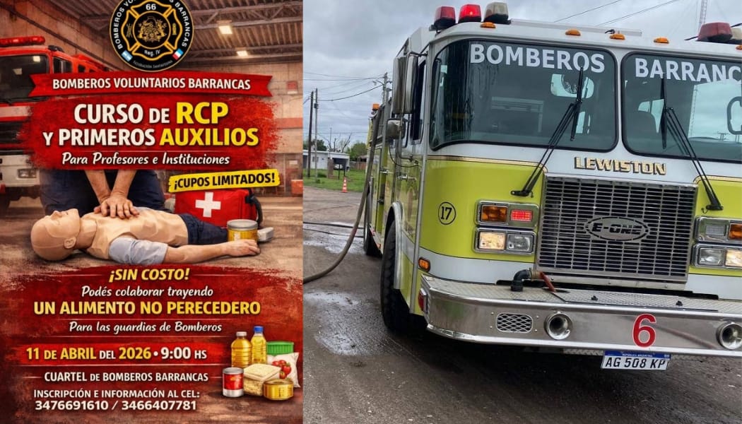 Bomberos Voluntarios de Barrancas dictarán un curso de RCP y Primeros Auxilios destinado a instituciones y profesores de la localidad. La capacitación se realizará el próximo 11 de abril a las 9:00 horas en las instalaciones del cuartel.