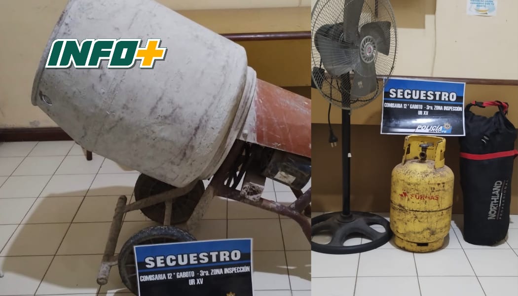 Personal de la Comisaría 12ª de Gaboto intervino anoche, alrededor de las 20:15, en un hecho de robo en grado de tentativa que culminó con el hallazgo y secuestro de diversos elementos sustraídos, entre ellos una hormigonera, una garrafa, un ventilador y una carpa, mientras continúa la búsqueda del presunto autor.