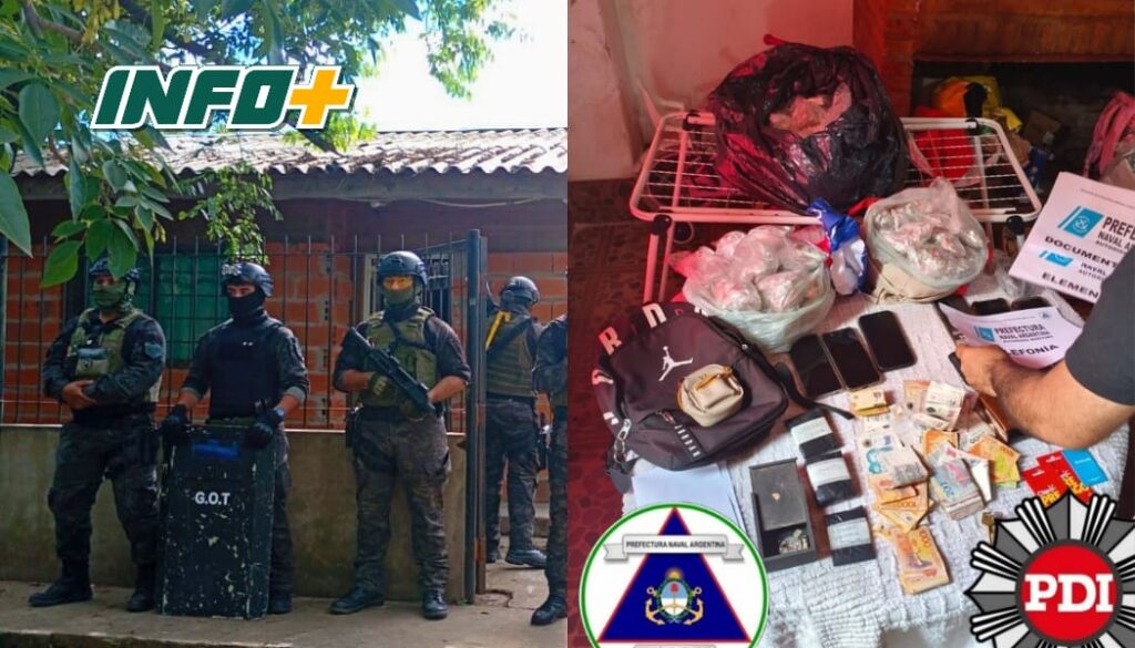 La Policía de Investigaciones (PDI), dependiente del Ministerio de Justicia y Seguridad de la Provincia de Santa Fe, conjuntamente con personal de Prefectura Naval Argentina (PNA), detuvo a 8 personas y secuestró casi 2 kg de cocaína fraccionada y más de 12 millones de pesos en múltiples allanamientos en las ciudades de Puerto General San Martín y San Lorenzo. Los procedimientos se enmarcan en una causa por comercialización de estupefacientes que investiga la fiscal Luisina Paponi del Ministerio Público de la Acusación (MPA).