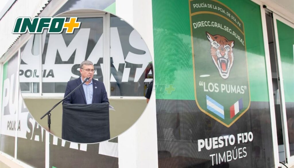 El presidente comunal de Timbúes, Antonio Fiorenza, junto a miembros de la Comisión Comunal, encabezó este viernes la inauguración del Puesto de Seguridad y Sede Operativa de la Dirección General de Seguridad Rural “Los Pumas” de la Policía de la Provincia de Santa Fe, ubicado en la intersección de calles Mangoré y Darwin de nuestra localidad. Se trata de un nuevo hito en la política de seguridad comunal; el cuarto dispositivo implementado en dos años de gestión.