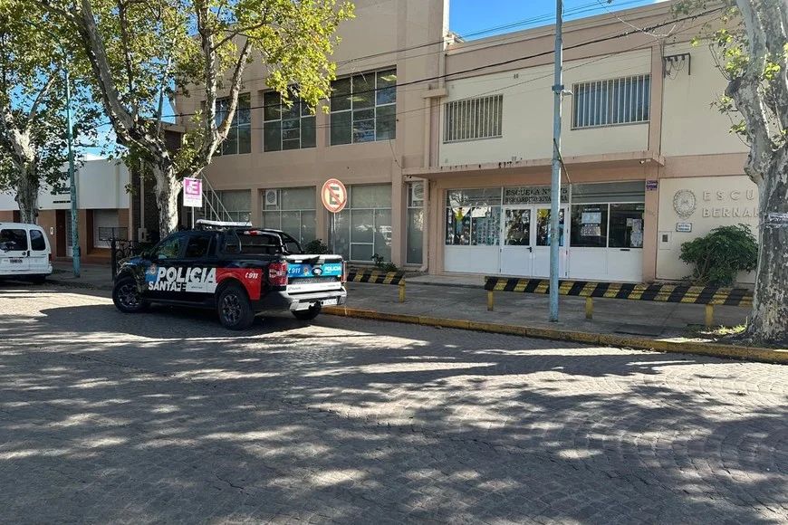 Este miércoles, la Escuela Rivadavia de Rafaela fue escenario de un nuevo despliegue con 4 patrulleros, luego de que se detectara un arma en las pertenencias de un estudiante de 11 años.