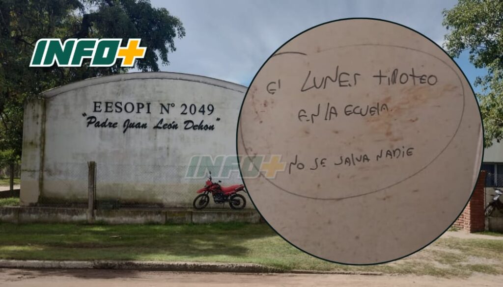 Una preocupante amenaza fue detectada este viernes en la Escuela Secundaria “EESOPI Nº 2049 Juan León Dehon”, donde apareció una inscripción intimidante en el baño de varones que generó alarma en toda la comunidad educativa. Vale aclarar que se trata de una modalidad generalizada en escuelas de distintos puntos de la provincia y el país.