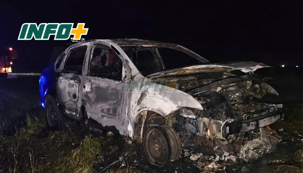 Al descender del rodado, un Ford Fiesta, el fuego se propagó rápidamente y consumió el auto en pocos minutos, provocando pérdidas totales. Afortunadamente, el hombre viajaba solo y logró salir a tiempo, sin sufrir heridas.