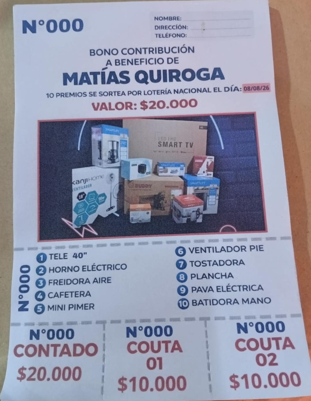 Mati Quiroga vuelve a necesitar del acompañamiento solidario de Maciel y la región para continuar con su proceso de recuperación. En ese marco, se lanzó un bono contribución cuyo primer premio es un televisor.