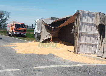 Un camión que transportaba cereal volcó este martes en horas del mediodía sobre la Ruta Provincial 91, en el tramo ...