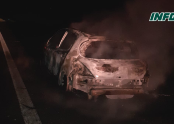 Un auto con una pareja a bordo circulaba sobre la autopista Rosario Santa Fe en el mediodía de este viernes ...