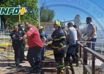 Un trabajador resbaló el pasado miércoles cuando caminaba por una pasarela a la vera del río Paraná y cayó al ...